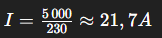 unde U = 230 V (monofazic) sau 400 V (trifazic, dacă sistemul este conectat în rețeaua trifazică). De pildă, dacă sistemul produce 5 kW (momentan):