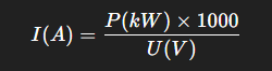 Până acum am discutat în termeni de energie (kWh/an). Dar dacă vrei să știi curentul (amperii) — trebuie să facem conversia luând în considerare tensiunea sistemului.